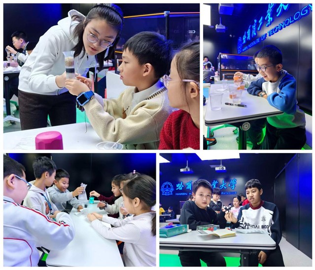 每天的“知识发芽站”环节,两期学员们均积极分享学习心得,交流实验中的发现与困惑。大家纷纷表示,原来化学就在身边,看似复杂的科学原理通过实验变得简单易懂,不仅收获了知识,更爱上了探索。两期课程的最后,学院邀请小朋友们来到哈工大明德楼参观实验室与学院展厅,高分子科学与工程学长学姐为大家讲解八百壮士魏月贞先生事迹,特种食药与生物化工创新研究中心肖丰老师带领学生参观实验室。为保障两期活动顺利开展,学院讲师团队提前完成课程试讲、物资筹备等工作,活动期间讲师专注授课、助教全程护航,并在结营仪式上为每位学员准备结营证书与充满学院特色的伴手礼,用专业与耐心为孩子们搭建了安全、有序的学习的平台。