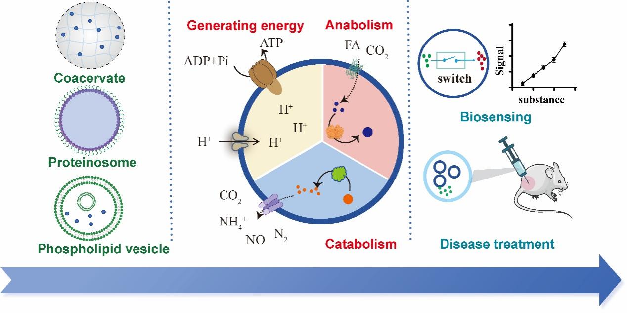 近日,我院教授、城乡水资源与水环境全国重点实验室成员韩晓军团队详细总结了人造细胞中能量产生、合成代谢和分解代谢的过程、反应条件、设计思路,以及具有代谢功能的人造细胞在生物传感和疾病治疗等领域的应用等方面的研究进展,为自主人造细胞的研究提供了重要理论指导。相关成果以《具有代谢功能的人造细胞进展:从基础到应用》(Advances in artificial cells capable of metabolic mimicry: from fundamentals to applications)为题发表在《化学学会评论》(Chemical Society Reviews)上。